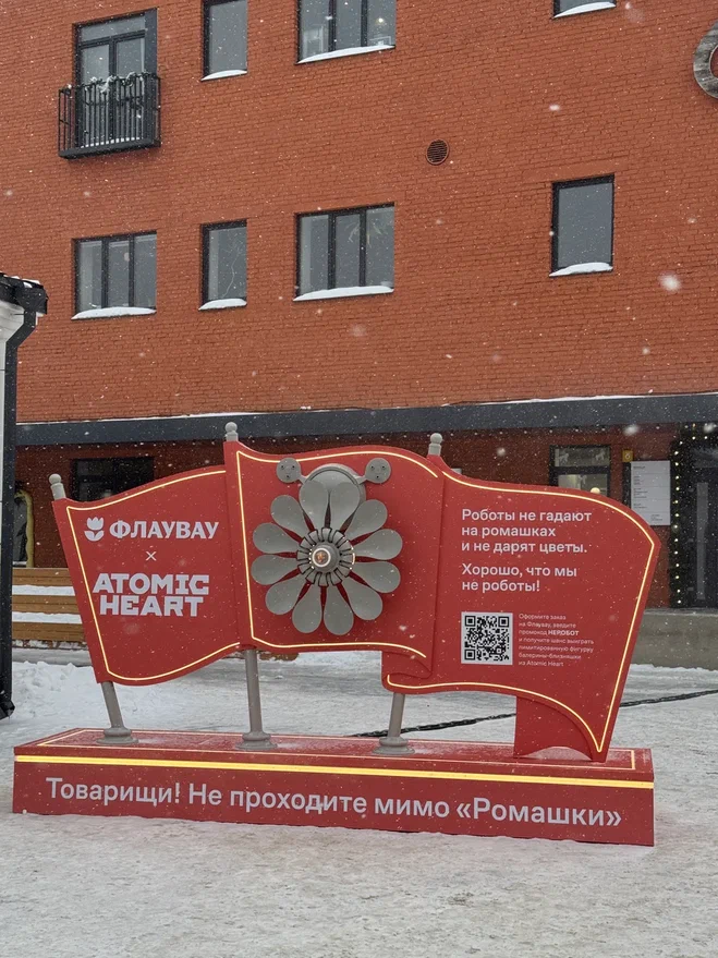 Маркетплейс цветов и подарков «Флаувау» запустил большую коллаборацию с Atomic Heart* к гендерным праздникам. В ее рамках виртуальный мир игры перемешивается с реальностью. Слоган кампании — фраза «Даже роботы испытывают чувства».